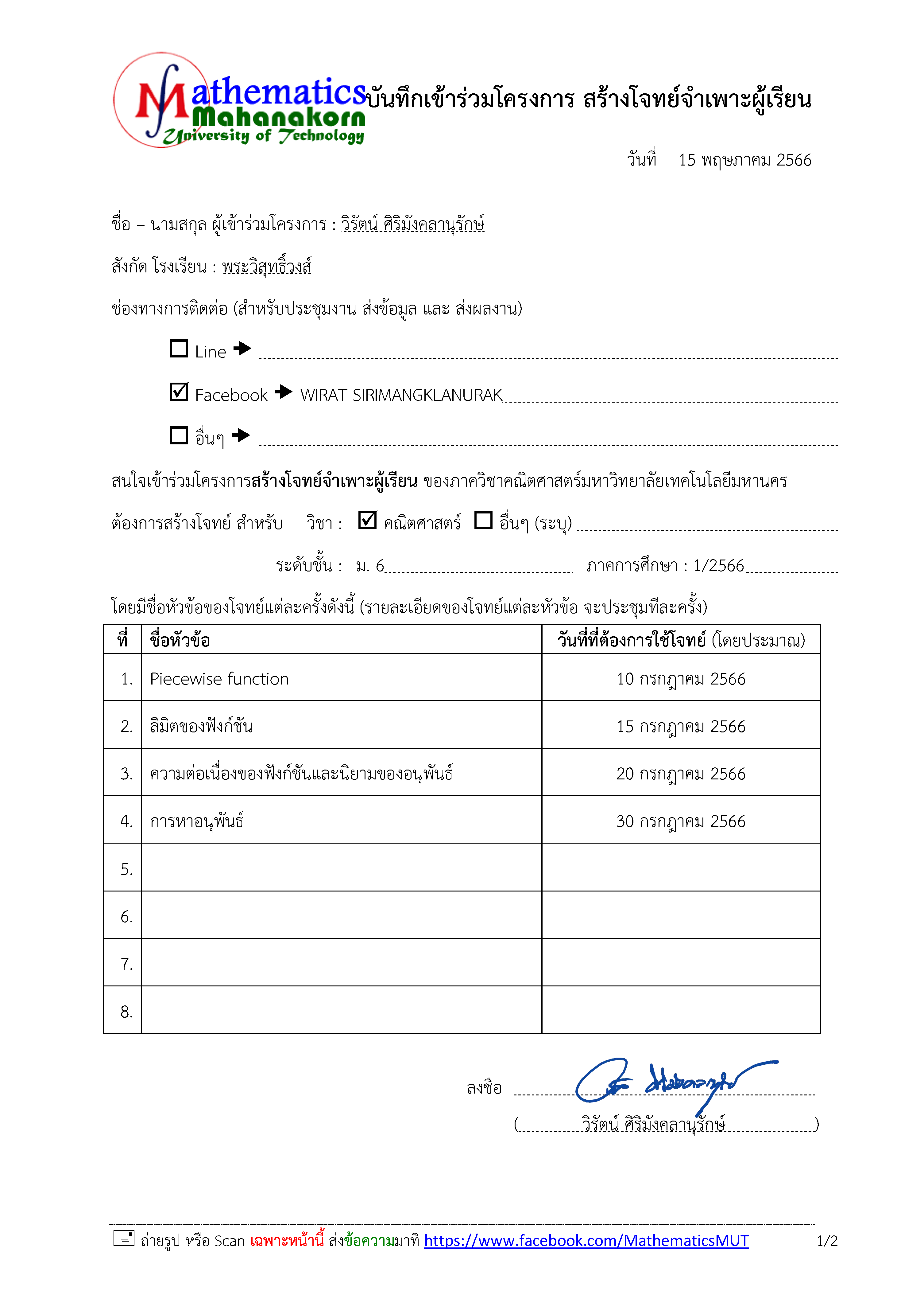 Math@MUT66005 อาจารย์วิรัตน์ ศิริมังคลานุรักษ์