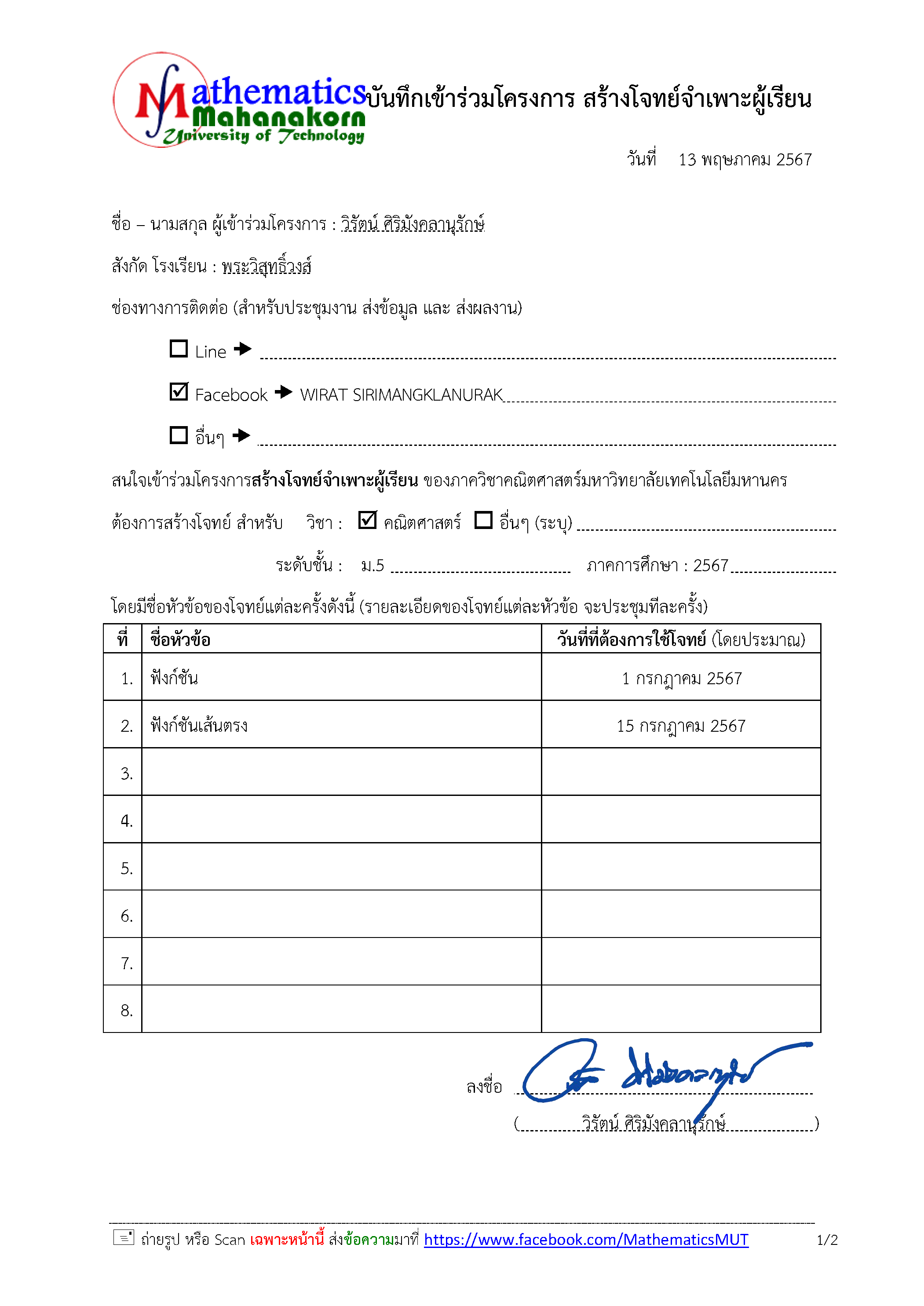 Math@MUT67004 อาจารย์วิรัตน์ ศิริมังคลานุรักษ์